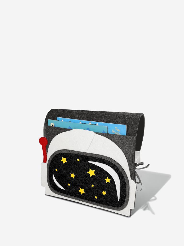 The Stackers bed pocket provides a fun way to store books and toys before bed.